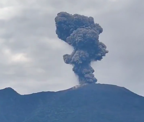 Gunung Marapi di Kabupaten Agam dan Kabupaten Tanah erupsi engan tinggi kolom abu tertinggi mencapai 1.500 meter di atas puncak pada Kamis pagi (3/4/2025). (foto: Ist)
