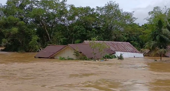 NASIONAL – Banjir besar melanda sejumlah kampung di Kecamatan Segah, Kabupaten Berau, Kalimantan Timur, pada Selasa (27/5). Dua kampung yang paling terdampak adalah Kampung Long La’ai dan Kampung Long Ayap, dengan ketinggian air mencapai lima meter. Derasnya arus sungai dan banyaknya batang kayu yang terbawa menghambat akses darat serta menyebabkan kerusakan parah pada fasilitas umum dan rumah warga.