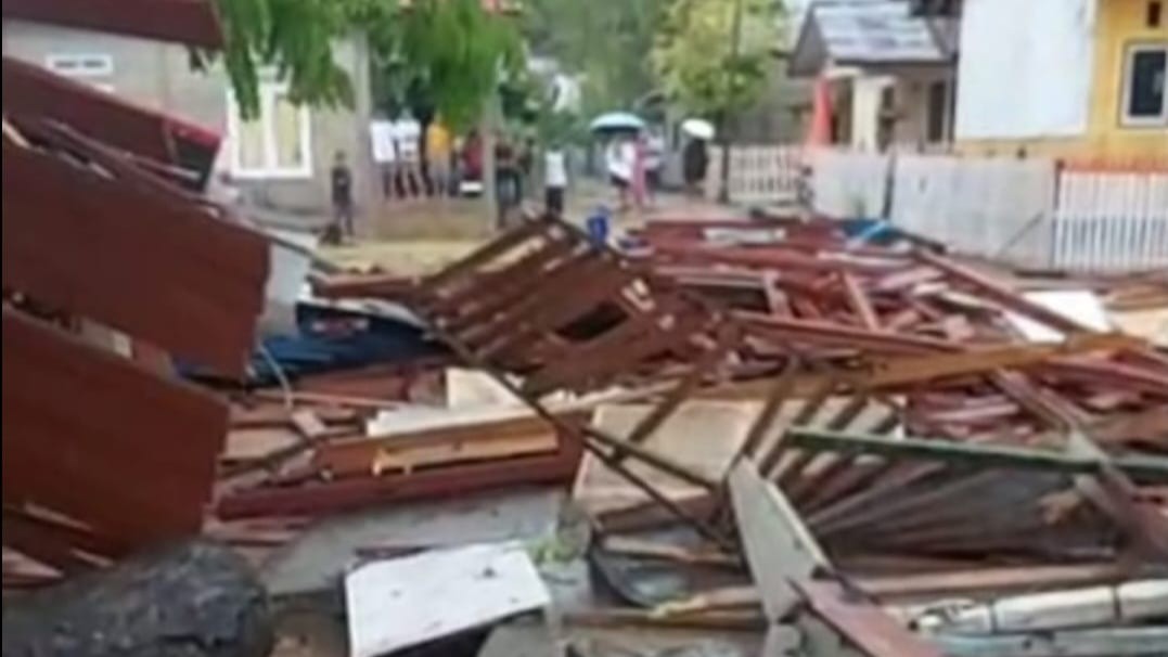Kondisi bangunan yang terdampak cuaca ekstrem di Desa Ponelo, Kecamatan Ponelo Kepulauan, Kabupaten Gorontalo Utara, Provinsi Gorontalo, Minggu (3/8). (Dok. BNPB)