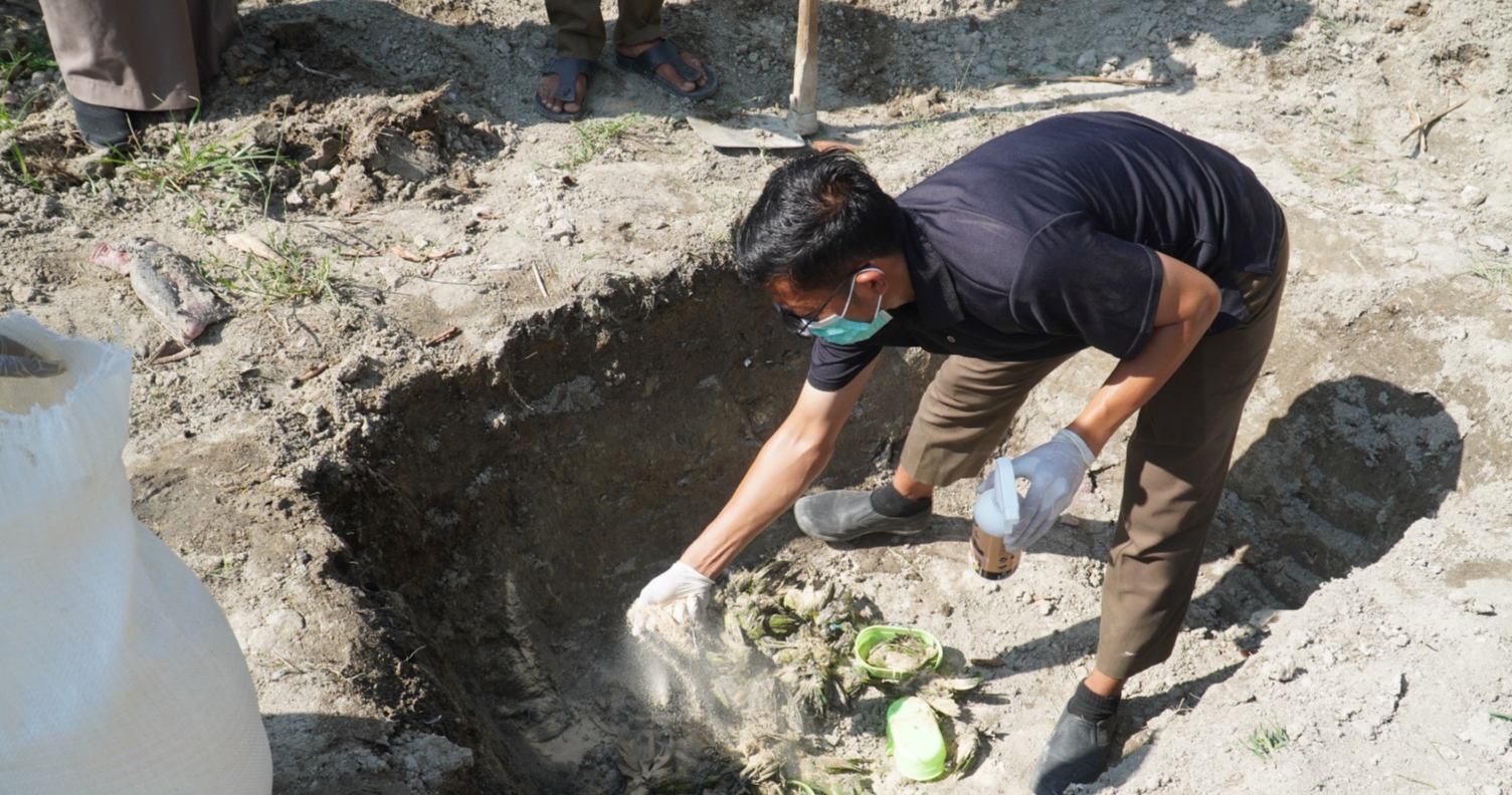 Petugas gabungan dari Bea Cukai, Karantina, dan aparat penegak hukum menghancurkan barang bukti ratusan ekor unggas ilegal jenis Poksay Hongkong dan Cica Daun Dahi Emas yang berhasil diamankan di Aceh Tamiang. (Dok. Ist)